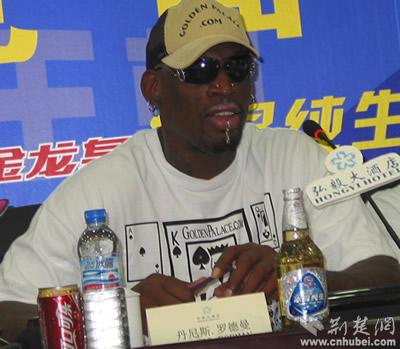 在記者會(huì)上,曾和喬丹、皮蓬一起被稱為“公牛鐵三角”、七屆NBA籃板的丹尼斯.羅德曼格外引人注目,記者圍繞著一些球迷感興趣的話題對(duì)他進(jìn)行了采訪。當(dāng)有人問(wèn)起他為什么在見(jiàn)面會(huì)上會(huì)這么平靜時(shí),他的回答幽默又讓人充滿期待:這里有這么多的攝影機(jī)、照相機(jī)和記者朋友,施展不開(kāi),當(dāng)然要平靜。賽場(chǎng)上的我和此時(shí)的我完全不同,想看一個(gè)真正的羅德曼,明天去賽場(chǎng)吧。