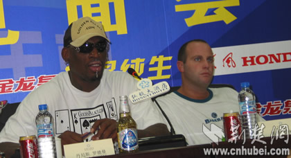 羅德曼和經(jīng)紀(jì)人戴瑞.普林斯在見(jiàn)面會(huì)上