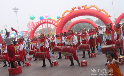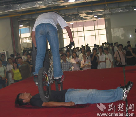 武漢市首屆時(shí)尚體育博覽會(huì)開(kāi)幕式現(xiàn)場(chǎng)來(lái)自硚口區(qū)漢水橋街威風(fēng)鑼鼓隊(duì)在開(kāi)幕式上進(jìn)行精彩的表演賽車俱樂(lè)部的車手和車模亮相東方神馬騎士俱樂(lè)部漂亮神氣的女騎士健身教練在進(jìn)行健身表演極限單車高手有驚無(wú)險(xiǎn)的表演