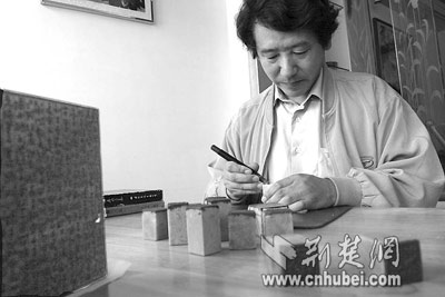 對于普通百姓來說,甲骨文是深邃而陌生的,但對46歲的柴有煒來說,卻是靈感的源泉。從1985年開始鉆研甲骨文篆刻印章,20年來,柴有煒已篆刻了200多方甲骨文印章,這些作品有的入選全國篆刻藝術(shù)展,有的被人珍藏。最讓柴有煒自豪的是,在全國性書畫大賽中,他的甲骨文印章曾五次獲金獎。
