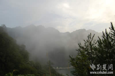 雨后初霽,可惜記者抵達這里時,趕上主峰的五指上大霧籠罩,所以五指峰的輪廓不是很清晰,大家只能拍攝到云霧中的五指峰。