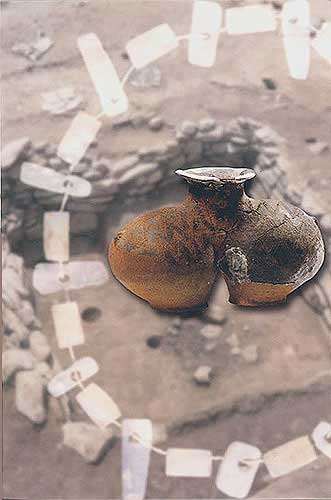 大理石和粘土巖制項(xiàng)飾:裝飾品(背景右,長(zhǎng)52厘米)[相關(guān)鏈接]:20世紀(jì)中國(guó)百項(xiàng)考古大發(fā)現(xiàn)(1-20)21、大溪遺址(圖)22、城頭山遺址(圖)23、屈家?guī)X遺址(圖)24、崧澤遺址(圖)25、馬家窯遺址(圖)26、柳灣墓地(圖)27、牛河梁遺址(圖)28、城子崖遺址(圖)29、良渚文化遺址群(圖)30、石家河遺址群(圖)31、陶寺遺址(圖) 32、王城崗遺址(圖)33、齊家坪遺址(圖)34、卡若遺址(圖)35、石峽遺址(圖) 36、東灣仔北遺址(圖)37、圓山遺址(圖)38、二里頭遺址(圖)39、東下馮遺址(圖)40、夏家店遺址(圖)