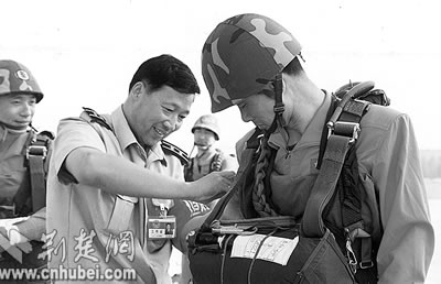 在“神舟”六號(hào)發(fā)射前夕,記者來到駐鄂空降兵某部軍營(yíng),采訪了曾任聶海勝傘訓(xùn)教官的空降兵某部研究所所長(zhǎng)李振波。