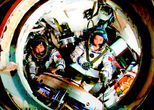 神六即將發(fā)射,宇航員正在進(jìn)行緊張訓(xùn)練。