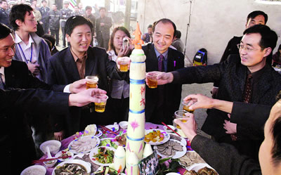 襄樊市委領(lǐng)導(dǎo)靳永龍、馬黎,棗陽(yáng)市委書記常全華和聶新勝等人,來(lái)到精心制作的生日蛋糕前,切生日蛋糕。頓時(shí),歡樂的禮花四處綻放,鞭炮齊鳴。來(lái)自全國(guó)各地的百余名記者紛紛舉起手中的相機(jī),閃光燈閃個(gè)不停,爭(zhēng)相記錄下這難忘的一刻。