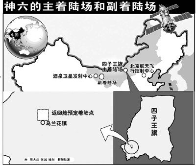 “飛船在軌飛行時間由1天變?yōu)槎嗵,使得著陸場系統(tǒng)必須全面啟用副著陸場!彼迤饎僬f。由于目前技術(shù)條件的限制,還無法對長期的氣象變化進行精確預(yù)報,這就使得在選擇飛船“發(fā)射窗口”時,無法完全保證主著陸場的氣象條件適合降落。位于內(nèi)蒙古中部草原四子王旗的主著陸場和位于酒泉附近的副著陸場相隔1000多公里,可以起到氣象備份的作用。