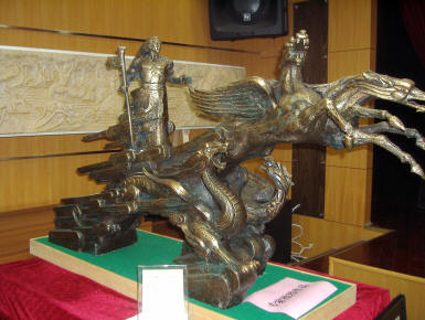 根據(jù)神話故事再創(chuàng)作的“大禹降生”、“乘車檢閱九鼎”、“三過家門而不入”等12件雕塑作品,體現(xiàn)了“原始、粗獷、神秘、浪漫和美好”的創(chuàng)作要求,特別是園區(qū)內(nèi)輔以綠化帶和小徑,能達(dá)到曲徑通幽的效果。