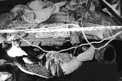 “我們睡覺的地方比馬路上還冷”,石棉瓦搭蓋的簡(jiǎn)易屋里四面透風(fēng),兩塊塑料布做的屋頂被風(fēng)刮得只剩一半。當(dāng)日上午10時(shí)許,記者看到,屋內(nèi)是木板搭建的上下兩層大通鋪,寒風(fēng)中,農(nóng)民工們裹著被子哭泣。