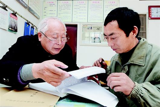 圖為:張秉涵老人向村民宣傳維權(quán)知識(shí)