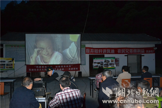 當(dāng)晚,在電影開(kāi)始前播放了由陽(yáng)光凱迪新能源集團(tuán)提供的秸桿回收與利用宣傳片,讓農(nóng)民朋友了解產(chǎn)業(yè)開(kāi)發(fā)“變廢為寶”帶來(lái)的收益,播放了由赤壁市普法工作辦公室拍攝制作的《留守兒童》公益廣告片和邵陽(yáng)花鼓戲《兒大女大》,現(xiàn)場(chǎng)還發(fā)放了由省扶貧辦編印的《扶貧到戶,畫說(shuō)政策》宣傳手冊(cè)、秸桿回收利用好處多等資料,讓廣大農(nóng)民群眾進(jìn)一步了解黨和政府的扶貧政策,真正享受到政策的好處。電影下鄉(xiāng)活動(dòng)猶如一道文化大餐,不僅給群眾送去歡樂(lè),而且還豐富了人民群眾的業(yè)余文化生活。