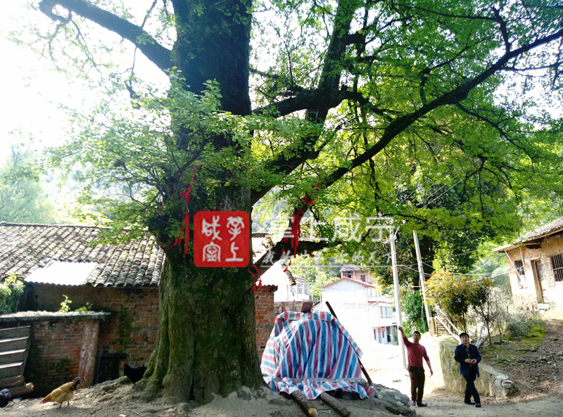 記者看到,在村內(nèi)的一處古民居旁,三棵銀杏樹高達(dá)近70米,枝葉繁茂,樹干挺立,要想圍住粗大的枝干必須要5個(gè)以上的成年人才能做到。在銀杏樹四周,還分布著拐棗、垂柳等多棵百年古樹。
