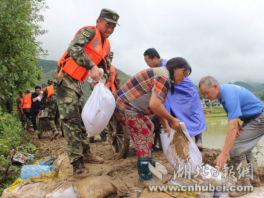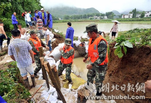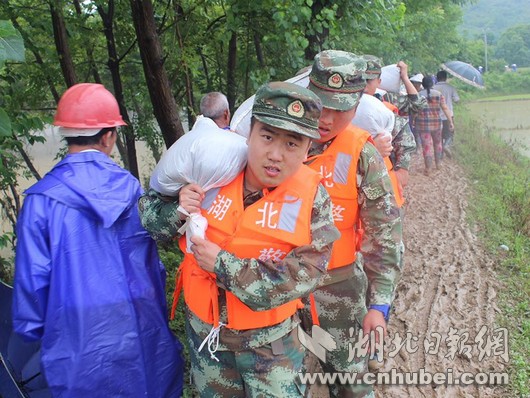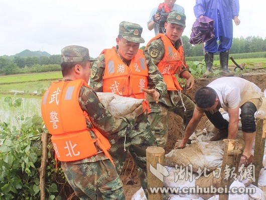 災情就是命令,武警湖北總隊咸寧支隊立即啟動應急機制,按預案迅速出動官兵20余名,攜帶救生繩、救生圈、編織袋、鐵鍬、洋鎬等工具第一時間奔赴現(xiàn)場,擔負裝填沙袋和筑堤任務。