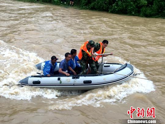消防官兵到達(dá)現(xiàn)場(chǎng)后發(fā)現(xiàn),河面約寬十米,水流湍急,此時(shí)依舊暴雨,河水還在不斷上漲。救援人員用拋投器將繩索投至河對(duì)岸,隨后,一名消防官兵身穿救生衣采取大繩橫渡的方式,到達(dá)對(duì)岸,將繩索固定;另一方面,消防官兵將繩索固定在水面橫行艇,由岸邊人做好牽引,一步步到達(dá)河對(duì)岸,在湍急的河流中一趟趟將被困人員運(yùn)送到安全地帶。