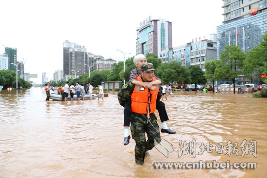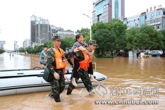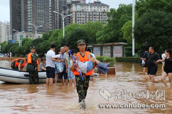 湖北日?qǐng)?bào)網(wǎng)訊(通訊員何智利、何彥卿、記者江卉)8月11日20時(shí)至8月13日12時(shí),咸寧地區(qū)普降大到暴雨,局部特大暴雨量達(dá)204.7毫米。強(qiáng)降雨導(dǎo)致城區(qū)咸寧大道、銀泉大道、玉泉街、書(shū)臺(tái)街等多條城市主干道嚴(yán)重積水,造成嚴(yán)重內(nèi)澇。8月13日13時(shí)許,武警咸寧支隊(duì)接到任務(wù)后,支隊(duì)長(zhǎng)廖光明率50名官兵,出動(dòng)車輛6臺(tái)、救援繩20根、皮劃艇3艘,轉(zhuǎn)移受災(zāi)群眾300余人,轉(zhuǎn)運(yùn)受損拋錨車輛20余臺(tái),疏通城市主干道5條。截止13日18點(diǎn),武警官兵還在一線救援。