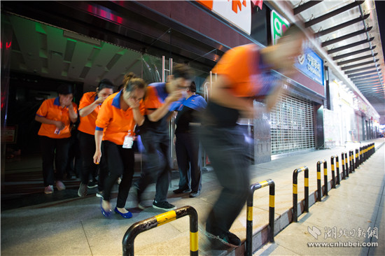晚8時,通城縣建筑體量最大的城市綜合體——三合中百購物廣場內(nèi),燈火通明,熙熙攘攘。忽然,警鈴大作。廣場因電線短路發(fā)生“火災(zāi)”,火勢迅速蔓延,大量人員被困。警情就是命令。廣場內(nèi)4個微型消防站立即按照預(yù)案,疏散廣場內(nèi)部人員,并啟動固定消防設(shè)施,阻止火勢蔓延。