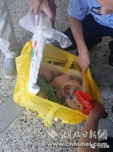 7日上午,崇陽縣天城鎮(zhèn)居民李師傅在該鎮(zhèn)下津大道路邊撿到一個白色包裹,送到崇陽縣公安局經(jīng)濟開發(fā)區(qū)派出所。為了找到包裹的主人,所長童鵬飛打開了包裹尋找線索,里面有豬肉、干筍等物品,還有一封信。