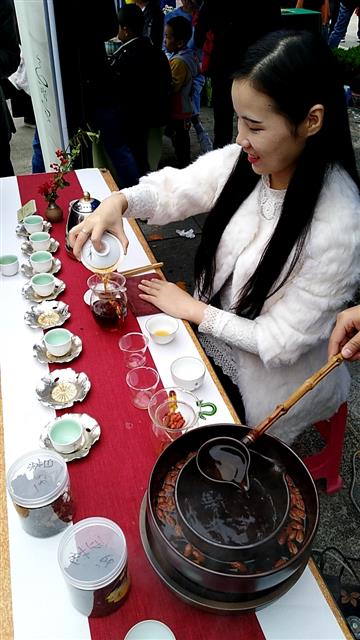 在咸寧茶友會成員逸思園生態(tài)茶葉展臺前,茶客絡(luò)繹不絕。大家品嘗瑤山紅茶、桃花尖白茶、泉谷毫峰綠茶等產(chǎn)品,相互交流品茶心得。“青磚茶膏,這還是第一次見到?!痹谙虒幐咝聟^(qū)溫泉茗樂堂茶樓展臺前,品嘗秘制的青磚茶膏后,不少老茶客對其濃郁的藥香氣和明顯的解酒功效贊不絕口!