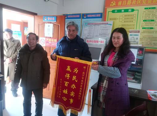 南昌路社區(qū)書記程曉華雙手接過錦旗說:“社區(qū)只是做了應(yīng)該做的,能夠給大家辦點實事、做點好事,這是我們社區(qū)的初衷和目的。以后大家有什么難處,來找社區(qū),我們也會盡力幫忙?!?/p>