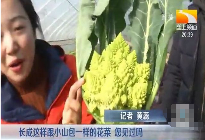 花球綠黃色,圓錐形似寶塔,上百個(gè)小花球還密密麻麻的跟螺旋一樣排列。記者黃蕊問到,這花菜長(zhǎng)得稀奇古怪的,倒是頭一回見啊。
