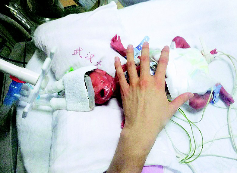 當(dāng)晚,圓圓降生??伤挥谐扇税驼拼笮?,體重810克,身長(zhǎng)32厘米,屬于“超低出生體重兒”“超早產(chǎn)兒”。她的皮膚呈青灰色,沒(méi)有呼吸和反應(yīng),只有不規(guī)則的、微弱的心跳。