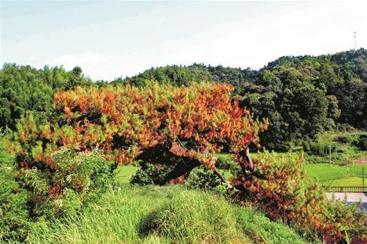 村民們介紹,今年8月8日左右,他們出門干活時(shí),抬頭發(fā)現(xiàn)這棵古樹有部分針葉發(fā)黃。村民感覺不對(duì),立即找到村支書反映,村支書迅速上報(bào)九宮山鎮(zhèn)政府及林業(yè)部門。鎮(zhèn)政府高度重視,鎮(zhèn)林業(yè)站站長(zhǎng)成獻(xiàn)忠緊急趕往現(xiàn)場(chǎng)查看后,向縣森防站求助。
