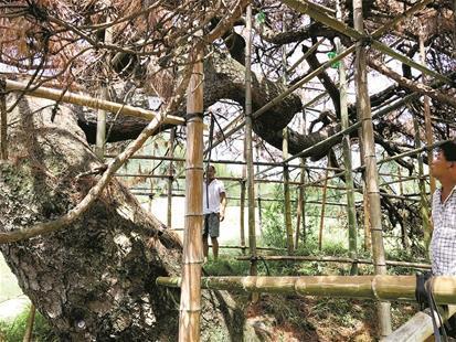 眼看這棵長(zhǎng)了400多年的古松奄奄一息,當(dāng)?shù)卮迕裥耐床灰?。村民們向楚天都市?bào)記者表示,只要有人能將這棵樹救活,全體村民愿捐款為他打賞。