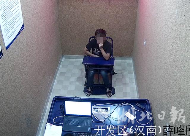 圖為:劉某落網(wǎng)后正在接受警方審訊。視界網(wǎng)謝威、宗姚琪攝。