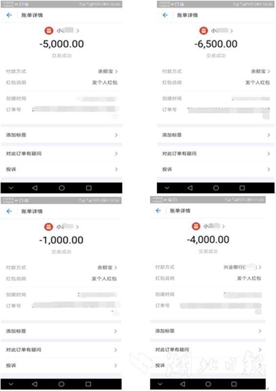 圖為:當(dāng)時(shí)的轉(zhuǎn)款記錄。視界網(wǎng)謝威、宗姚琪攝。