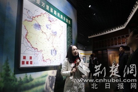 金牌講解員正在向采風(fēng)團成員講解萬里茶道路線。(采訪團成員供圖)