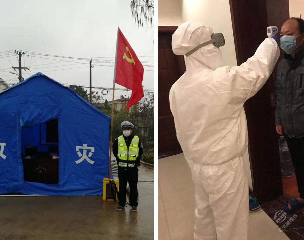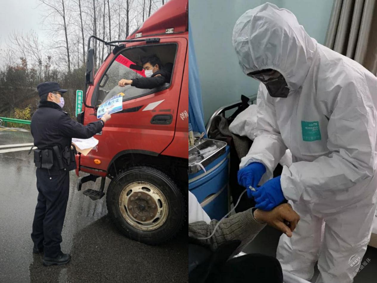 除夕至今,楊光吃住在單位,跑遍轄區(qū)角角落落,三個(gè)卡點(diǎn)的排班表和巡邏值班表上寫滿了他的名字。王姣抽調(diào)到隔離四區(qū),給病患打針治療、記錄生命體征、照料起居生活。