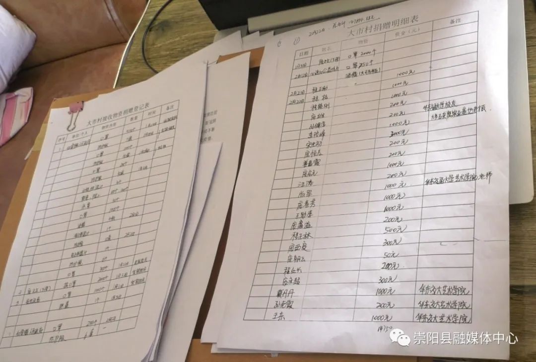 截至2月23日中午12點,大市村共收到6.5萬元捐款和1955套一次性防護用品。