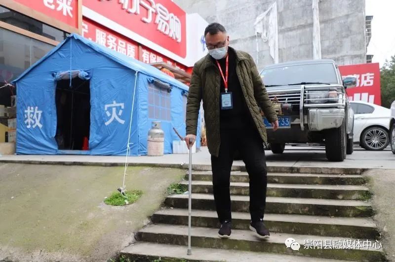 早在2016年,因?yàn)橐粓?chǎng)意外,造成劉衷輝雙膝半月板壞死,前后進(jìn)行兩次手術(shù)均失敗,被定為二級(jí)傷殘,到現(xiàn)在走路都需要拄著拐杖慢慢挪動(dòng),行動(dòng)十分不便。即便是在這樣的情況下,劉衷輝沒有退縮,柱起拐杖就來到了天城鎮(zhèn)和平社區(qū)政協(xié)網(wǎng)格點(diǎn)參與卡點(diǎn)值守工作。