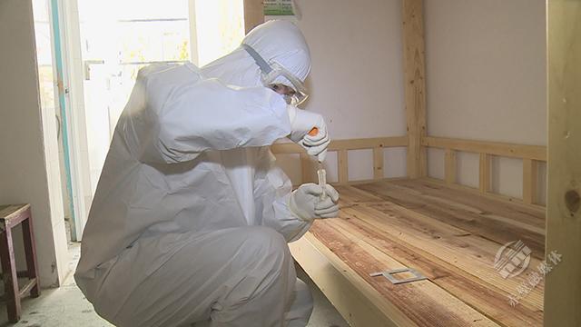 在隔離點內(nèi),消殺人員使用配制好的含氯消毒劑,對工作區(qū)域、房間、走廊、墻壁、地面、內(nèi)外環(huán)境、房間門把手、衛(wèi)生間等場所進行滯留噴灑,進行徹底有效的消毒處理。消毒完畢后,采樣人員按照操作規(guī)范對房間空氣、門把手、洗手池等處進行采樣,帶回實驗室檢測。