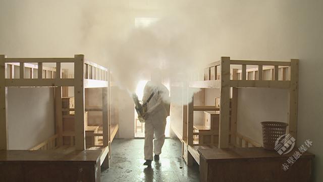 機電學校集中隔離點是赤壁市較早清空的隔離點之一。3月10日,記者來到機電學校,疾控中心的工作人員正在這里開展消殺工作。