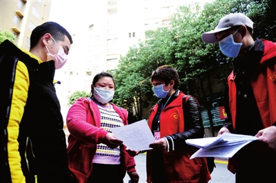 摸排后,社區(qū)集中外來和返鄉(xiāng)人員、從武漢回來、途經(jīng)武漢或有武漢旅行史的人,建立微信群,大家每天在群里匯報全家體溫。社區(qū)征集轄區(qū)數(shù)十名志愿者,僅代購員就有17名,開展防疫宣傳、排查回訪、出入登記等服務(wù)工作。