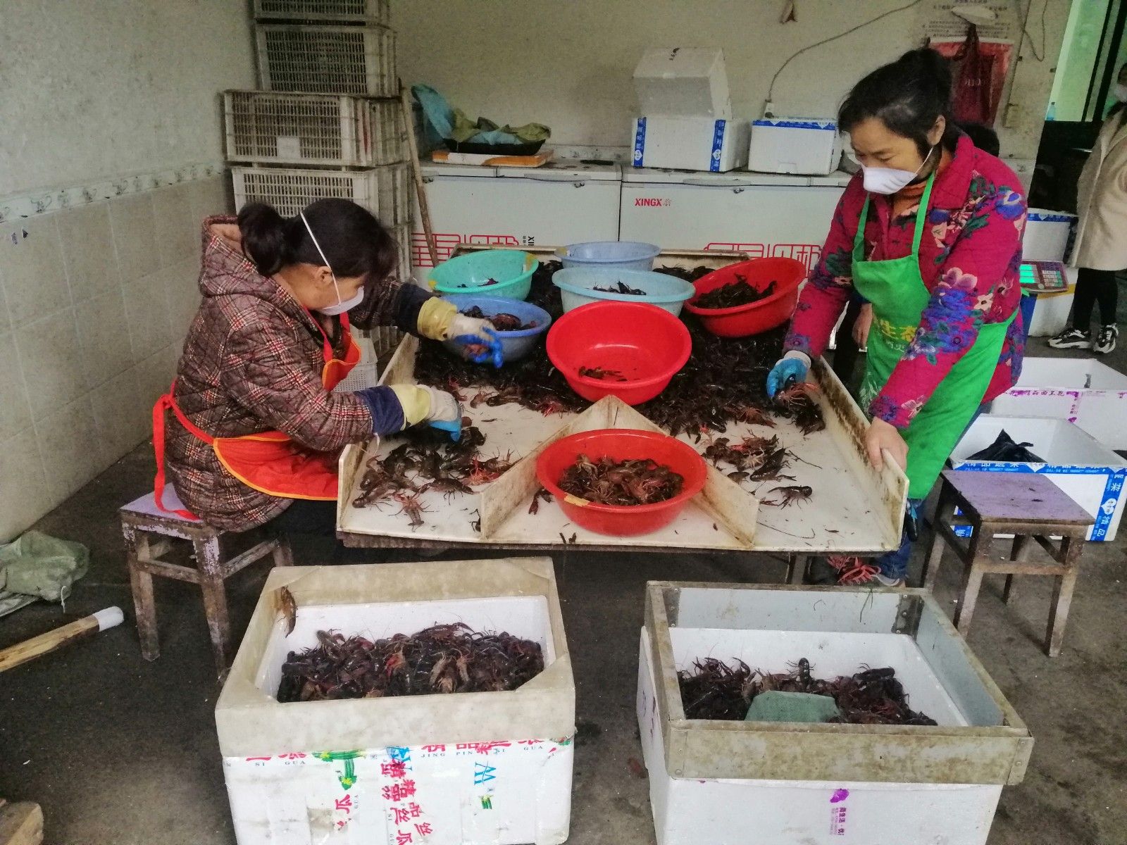 在官塘驛鎮(zhèn)泉口村神泉湖種養(yǎng)殖專業(yè)合作社,負(fù)責(zé)人童聰正在忙著將收購(gòu)來的小龍蝦進(jìn)行等級(jí)分揀打包,準(zhǔn)備發(fā)往全國(guó)各地。該合作社現(xiàn)在每天小龍蝦成交量3000斤左右,高峰期保持在1.5萬斤,主要銷往江浙滬粵。