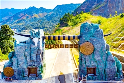 瑤祖故里大觀園內,古瑤壘石門樓,蘊天地靈氣,攬關山萬重。天然青石壘砌的梯形門樓,古色古香,錯落有致。