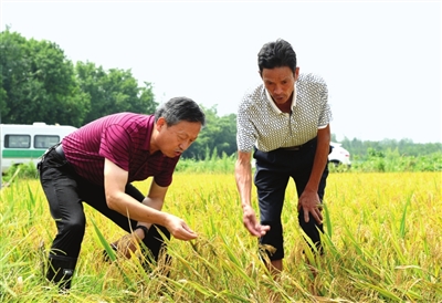 排澇搶收減損失 14日,赤壁農(nóng)業(yè)農(nóng)村局產(chǎn)業(yè)股股長(zhǎng)錢直榮和農(nóng)藝師金剛來(lái)到車埠鎮(zhèn)梅湖村指導(dǎo)村民搶收搶種。看到農(nóng)技人員下到田中,周邊農(nóng)戶都圍攏過(guò)來(lái),期待他們的技術(shù)指導(dǎo)。