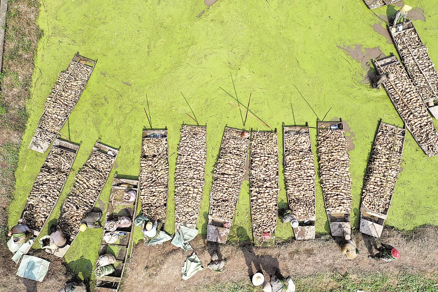 10月13日,嘉魚縣陸溪鎮(zhèn)農(nóng)民趁著晴好天氣挖藕。這些蓮藕經(jīng)嘉魚鴻富農(nóng)產(chǎn)品有限公司加工后,將出口至東南亞和北美等地區(qū)。嘉魚縣蓮藕、蓮子、藕帶是區(qū)域特色明顯的優(yōu)勢農(nóng)產(chǎn)品。近年來,嘉魚縣把發(fā)展蓮藕作為調(diào)整農(nóng)業(yè)產(chǎn)業(yè)結(jié)構(gòu)、增加農(nóng)民收入的重要途徑。目前,全縣蓮藕種植面積4.85萬畝,2019年全縣蓮藕產(chǎn)業(yè)實(shí)現(xiàn)綜合產(chǎn)值5.6億元。