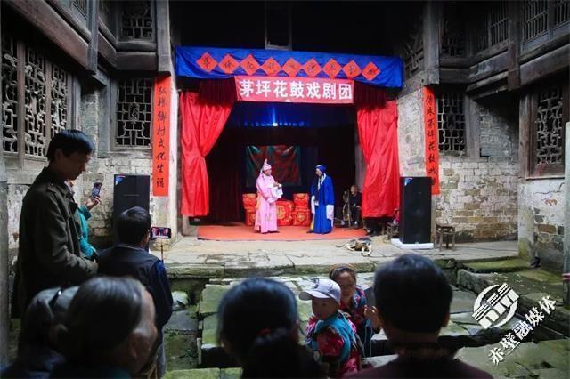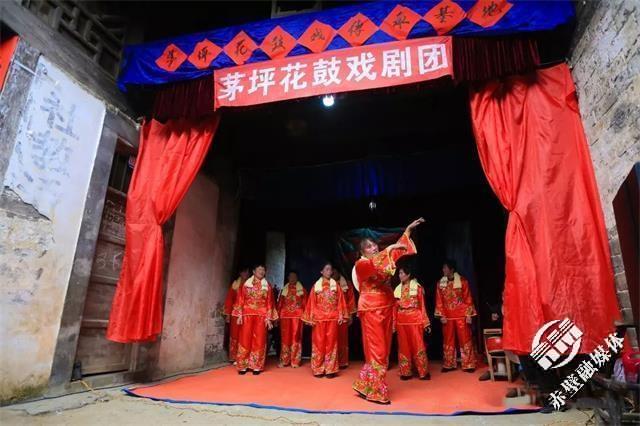 聊起茅坪花鼓戲說,這里的村民介紹,過去在村里文化生活不是那么豐富的時候,花鼓戲是大家勞作之后喜聞樂見的娛樂活動,逢年過節(jié),家有喜事必定少不了一場表演,祖輩們一代代傳承至今,可見當(dāng)?shù)氐拇緲忝耧L(fēng),有些父輩甚至從業(yè)茅坪花鼓戲一輩子,幾十年如一日,有的既是導(dǎo)演,又是演員,拉胡琴、吹嗩吶、打鑼鼓樣樣在行。