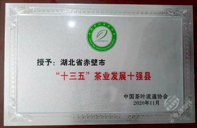 11月18日,第十六屆中國(guó)茶業(yè)經(jīng)濟(jì)年會(huì)正式發(fā)布了2020中國(guó)茶葉行業(yè)調(diào)查的最終結(jié)果,對(duì)年度中國(guó)茶業(yè)優(yōu)秀企業(yè)、優(yōu)秀縣域進(jìn)行授牌表彰。赤壁市榮獲“十三五百?gòu)?qiáng)縣市十強(qiáng)”和“2020年度茶業(yè)百?gòu)?qiáng)縣”稱號(hào),其中“十三五百?gòu)?qiáng)縣市十強(qiáng)”中赤壁市是湖北省唯一入選的縣市,在“2020年度茶業(yè)百?gòu)?qiáng)企業(yè)”評(píng)選中,羊樓洞茶業(yè)股份有限公司成為咸寧市唯一入選的企業(yè)。