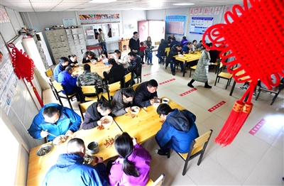 “項(xiàng)目部很貼心,給外地來(lái)的家屬準(zhǔn)備了很多過(guò)年物資,還給孩子們準(zhǔn)備了玩具。”在職工宿舍樓下,龔飛正帶著孩子們玩耍,她說(shuō),這里掛燈籠、貼春聯(lián)、糊窗花,在這里過(guò)年感受到了家一般的溫暖,年味濃濃。