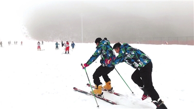 山下春光明媚,山上白雪皚皚,滑行于九宮山滑雪場內(nèi),眼前是白茫茫的雪景,耳邊傳來的是陣陣歡笑,在雪場上盡情揮灑汗水,感受著風(fēng)的速度,展示著體育競技帶來的激情與魅力。14日,咸安區(qū)雙溪橋鎮(zhèn)居民周惠文與閨蜜兩人相約來到九宮山滑雪。游玩了一番后兩人都感嘆,“春節(jié)在九宮山呆了三天,滑雪場玩了一整天,感受這里的慢節(jié)奏和與世隔絕的快樂生活,這次出游特別值?!?/p>