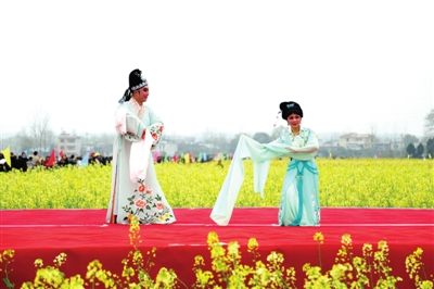 精彩的文藝演出、極具地方風(fēng)情的民俗表演和國(guó)家非物質(zhì)文化遺產(chǎn)提琴戲演唱,與花海交相輝映,為大家?guī)?lái)了視聽盛宴。開幕后,游客開始游玩賞景,大家邊感嘆七彩油菜花的美,邊呼朋引伴拍照留念,人花相映襯,美不勝收。除了賞花,大家還紛紛品嘗特色美食,購(gòu)買當(dāng)?shù)靥厣r(nóng)產(chǎn)品。