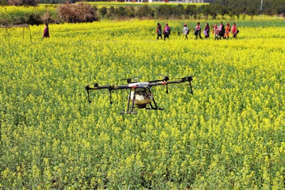3月4日,在咸安區(qū)馬橋鎮(zhèn)建國(guó)畈油菜花海,一臺(tái)無人機(jī)盤旋在油菜花田上方,為油菜噴施環(huán)保復(fù)合肥。據(jù)咸安區(qū)農(nóng)業(yè)農(nóng)村局介紹,這是通過無人機(jī)來給油菜送“套餐”,無人機(jī)攜帶著精心調(diào)配的藥肥,能夠快速的對(duì)油菜大面積噴灑覆蓋,作業(yè)效率和效果顯著優(yōu)于人工噴施。