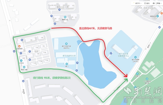 這條路位于咸寧市城區(qū),是一條連接銀桂路和十六潭路的城市支路,于2021年3月建成通車,被命名為鏡湖路?!剁R湖路微循環(huán)工程公示牌》顯示,“本次規(guī)劃道路起點位于銀桂路,終點位于鏡湖路,規(guī)劃全長358.46米,設(shè)計車速20千米/小時,為城市支路。該路建成增加了馨園小區(qū)357戶居民車流集散通道,車輛進(jìn)入十六潭路的距離大大縮小,極大方面了居民出行;同時分流了繞行銀桂路車流,有效緩解了銀桂路交通壓力。