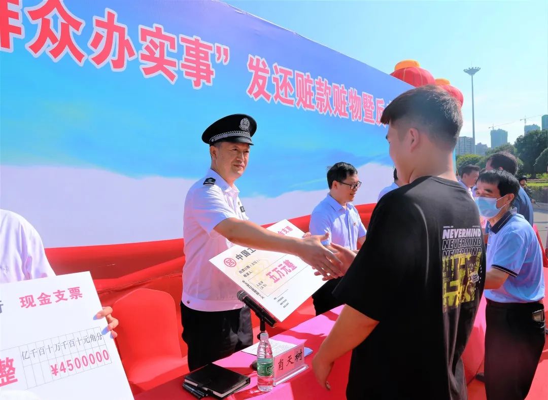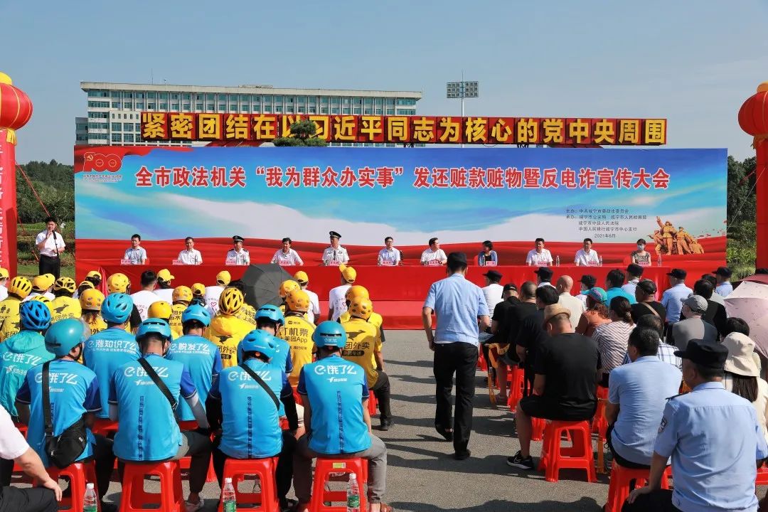 通過此次退贓大會,進一步向全市人民展示了咸寧公安扎實開展“我為群眾辦實事”活動成效,以及嚴(yán)打嚴(yán)防各類犯罪,致力“打防管控宣”,堅決斬斷伸向群眾錢袋子的黑手。