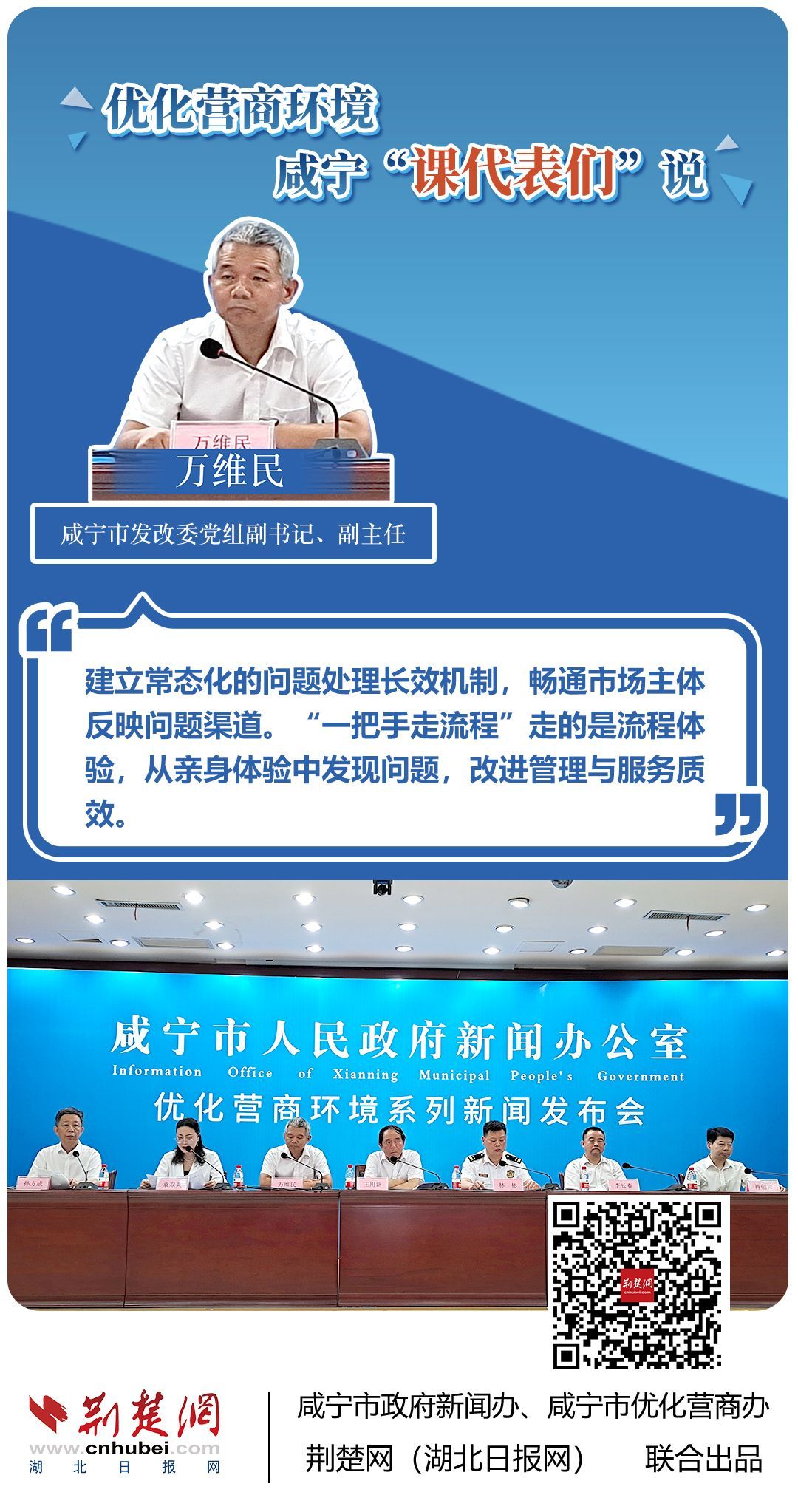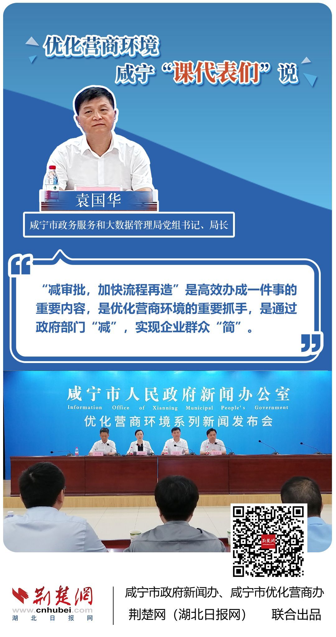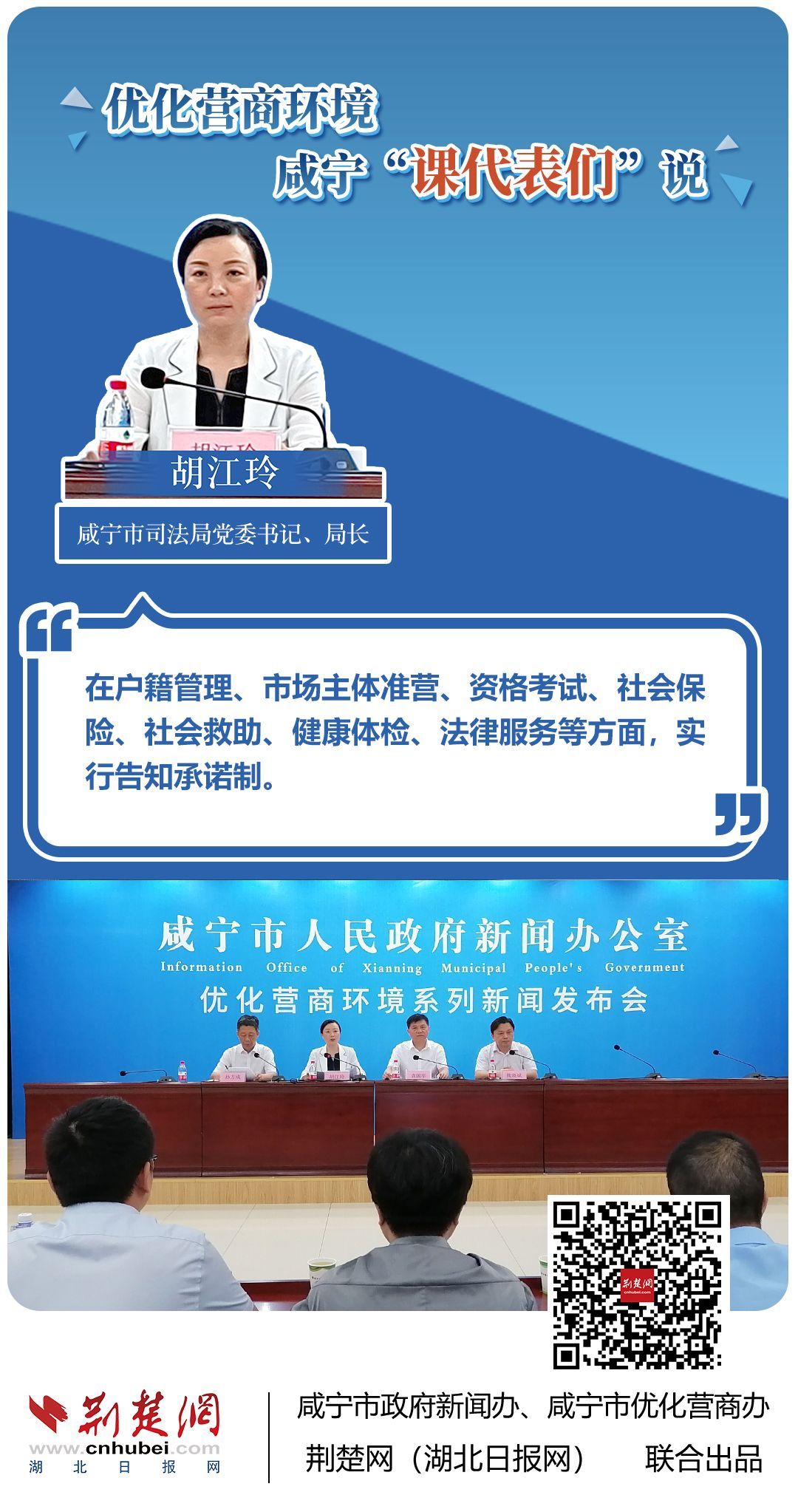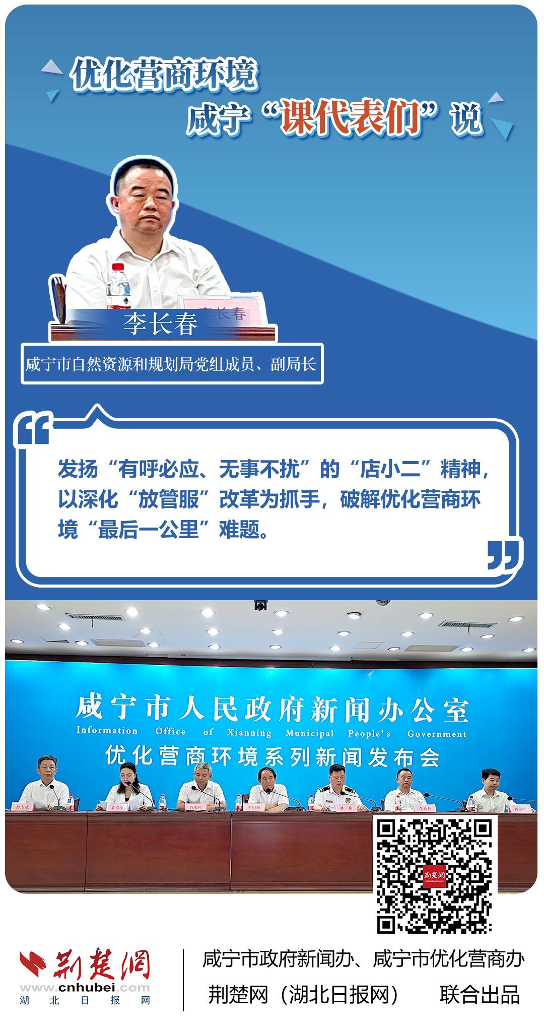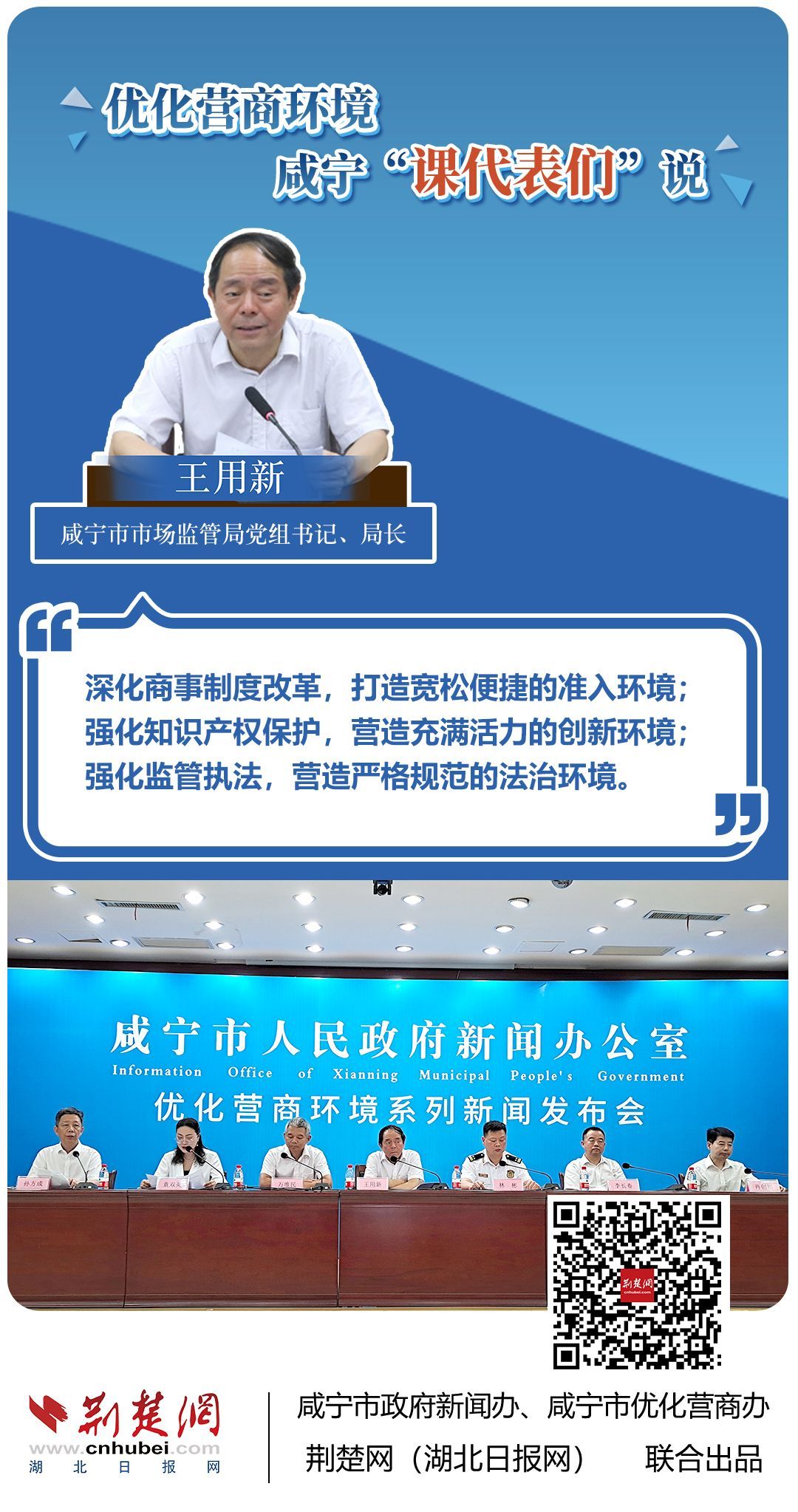 荊楚網(wǎng)(湖北日?qǐng)?bào)網(wǎng))訊(記者 王焱堯 田城 呂鑒蕾 通訊員 張永紅 程蒙)打造寬松便捷的準(zhǔn)入環(huán)境,將服務(wù)部門“一把手”推到窗口,實(shí)行消防行政許可辦理“雙軌制”,加大誠(chéng)信體系建設(shè)和知識(shí)產(chǎn)權(quán)保護(hù)力度……7月20日,咸寧市直單位9名優(yōu)化營(yíng)商環(huán)境發(fā)言人亮相新聞發(fā)布會(huì),圍繞“優(yōu)化營(yíng)商環(huán)境”這一主題,談做法、論經(jīng)驗(yàn)、說打算。