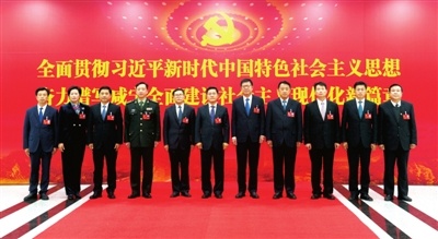 12月7日下午,新當(dāng)選的中共咸寧市第六屆委員會常務(wù)委員會委員集體合影?!∠虒幦請笕襟w記者 袁燦 攝
