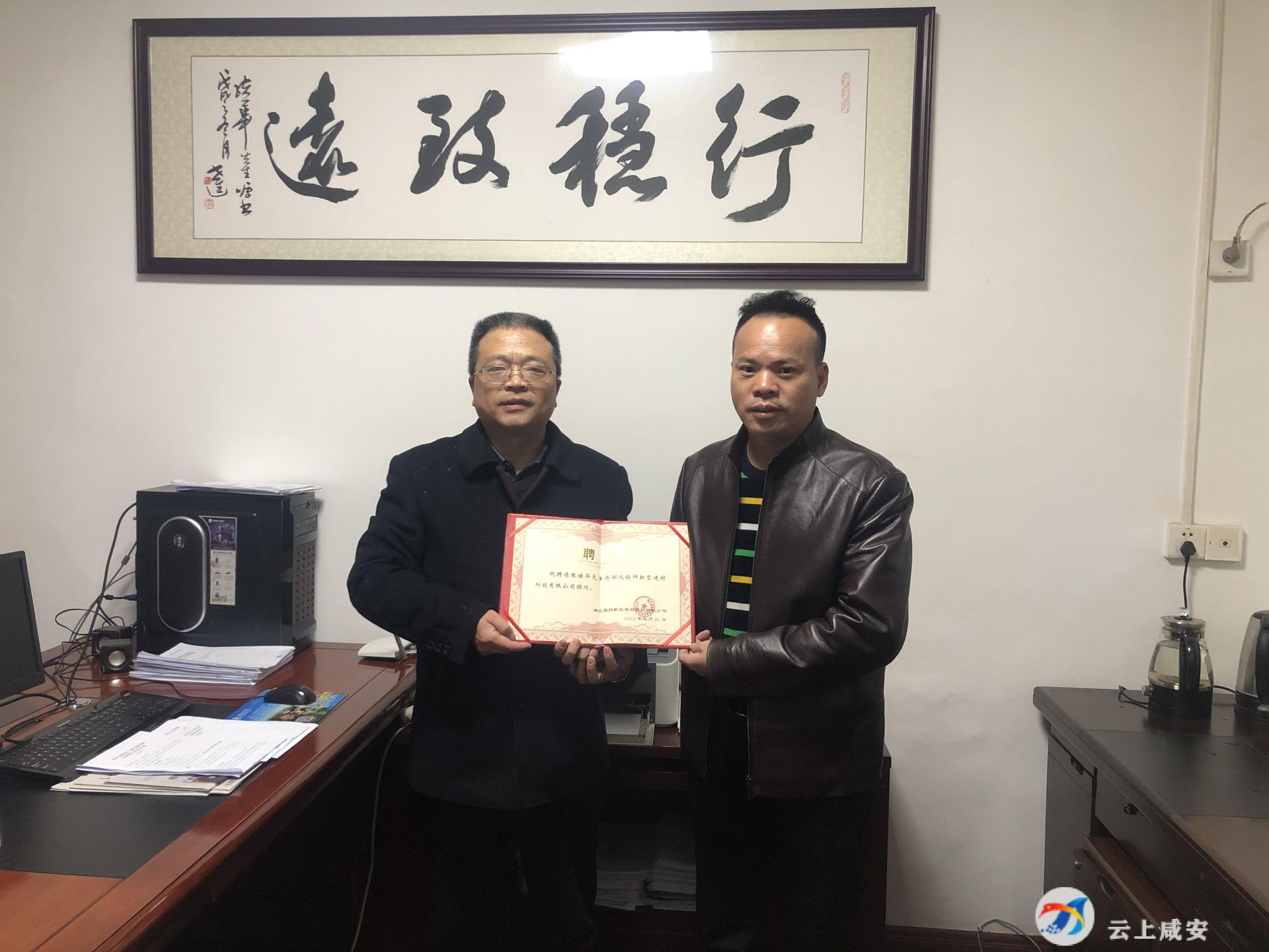 云上咸安報道(融媒體記者 劉正杰 李宇 特約記者 李星)日前,湖北福帥新型建材科技有限公司董事長吳選勤帶著公司的聘任證書,來到區(qū)科經(jīng)局,聘請該局局長張緒華為公司顧問。這張沒有報酬的聘書背后,是一份沉甸甸的責任,是科經(jīng)局有呼必應、應必有果的“店小二”精神,是區(qū)委、區(qū)政府不遺余力持續(xù)優(yōu)化營商環(huán)境的結果。